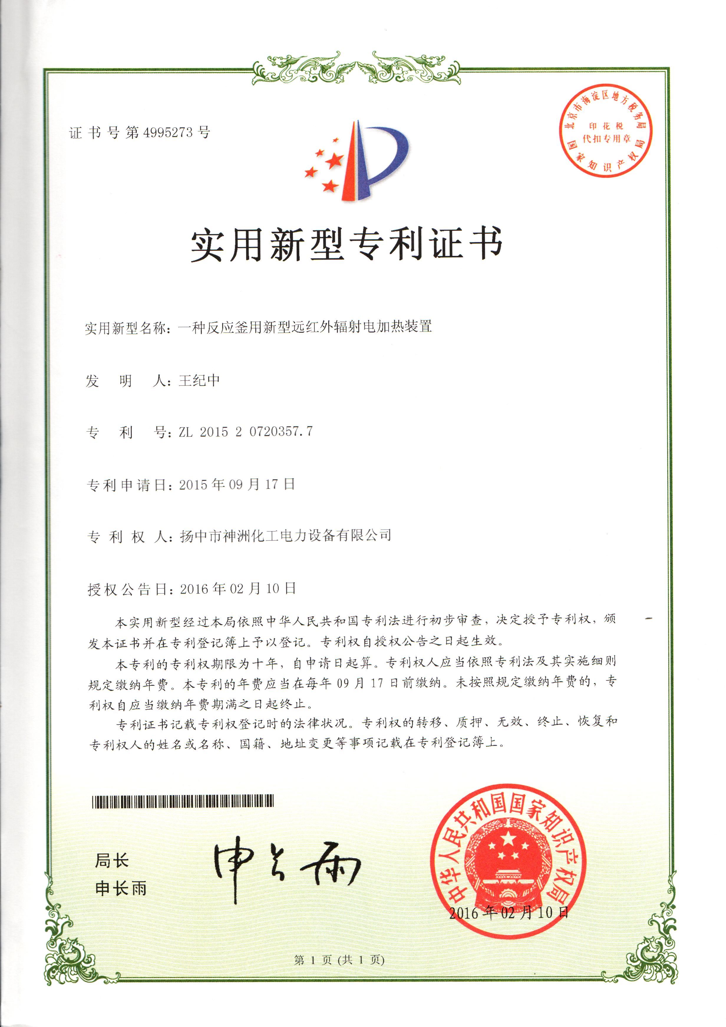 | 一種可遠程控制的遠紅外電加熱裝置 | 一種生產(chǎn)石墨烯的遠紅外反應釜 | 一種生產(chǎn)鎢酸鈉的壓煮釜專用的遠紅外輻射電加熱裝置 |